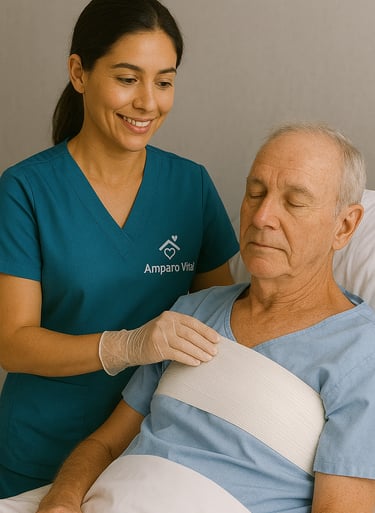 A Amparo Vital Home Care oferece cuidados pós-cirúrgicos domiciliares em Goiânia, com foco na recuperação segura e confortável de cada paciente. Nosso atendimento é realizado por enfermeiros, técnicos e cuidadores experientes, que acompanham todas as etapas do processo de reabilitação. Realizamos curativos, controle de medicação, troca de curativos e sondas, aferição de sinais vitais, prevenção de infecções e acompanhamento na mobilidade. Nosso objetivo é evitar complicações e acelerar a recuperação, garantindo suporte contínuo no ambiente familiar. Com atenção humanizada e acompanhamento profissional 24 horas, proporcionamos tranquilidade, segurança e confiança durante todo o período pós-operatório.
